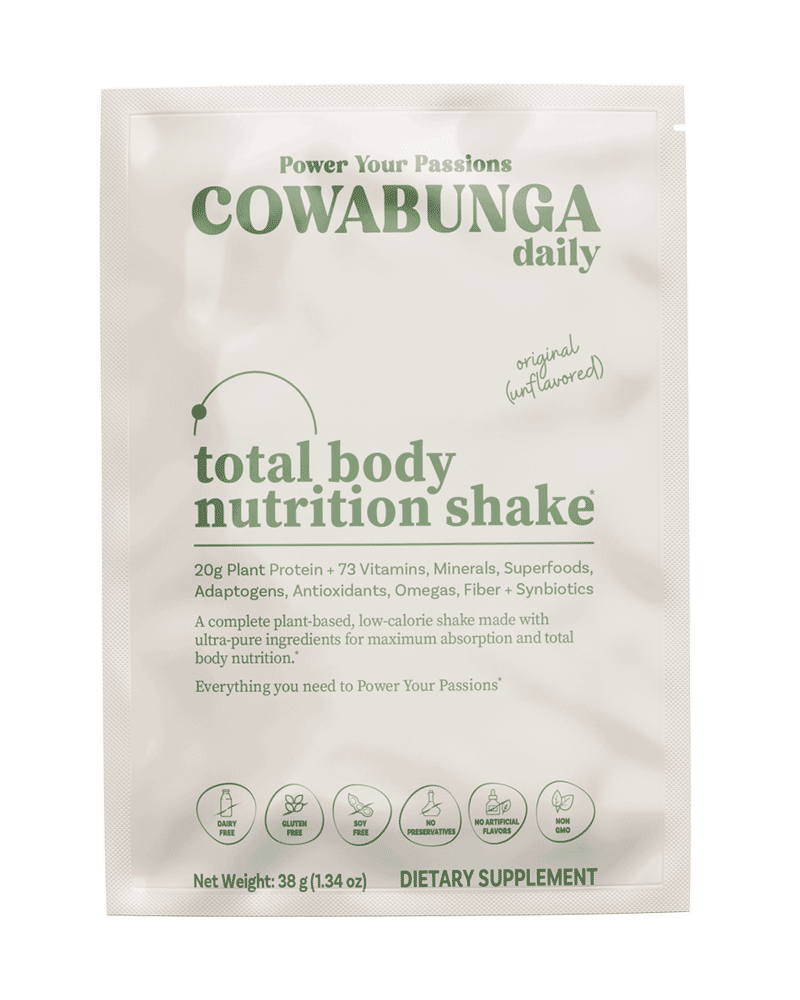 We wanted something simple, clean, and effective to keep our family fueled and healthy. That’s why we created Cowabunga Daily. Think of it as your family’s daily wave of wellness: a liquid multivitamin packed with whole-food nutrients that absorb fast and taste great, paired with a superfood protein shake.